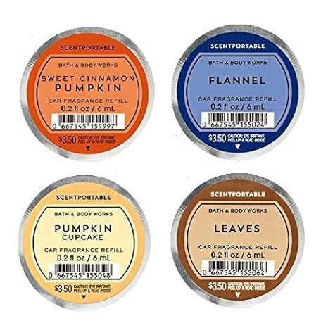 Bath Body Works Fall Scentportable Bundle For Autumn Pumpkin Cupcake Sweet Cinnamon Pumpkin Leaves And Flannel Scentportables
