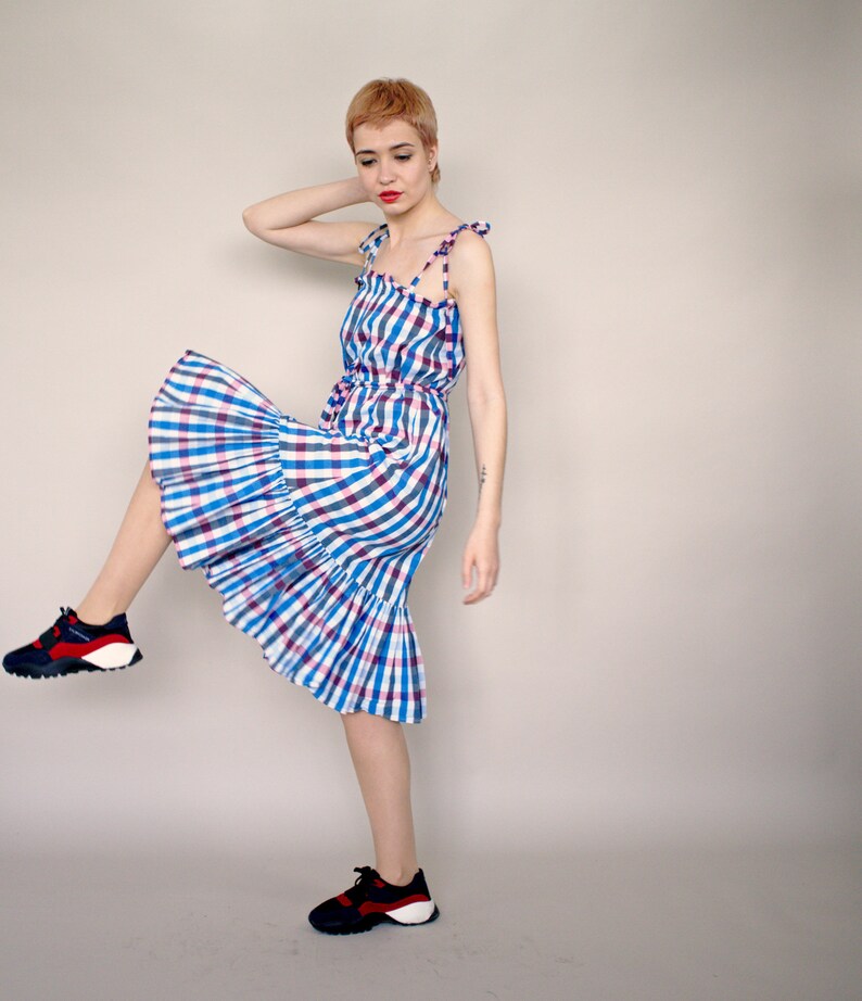 Dress For Women Blue Dress Summer Dress Plus Size Clothing Tartan Dress Plaid Dress Women Dress Trendy Plus Size Beach Dress