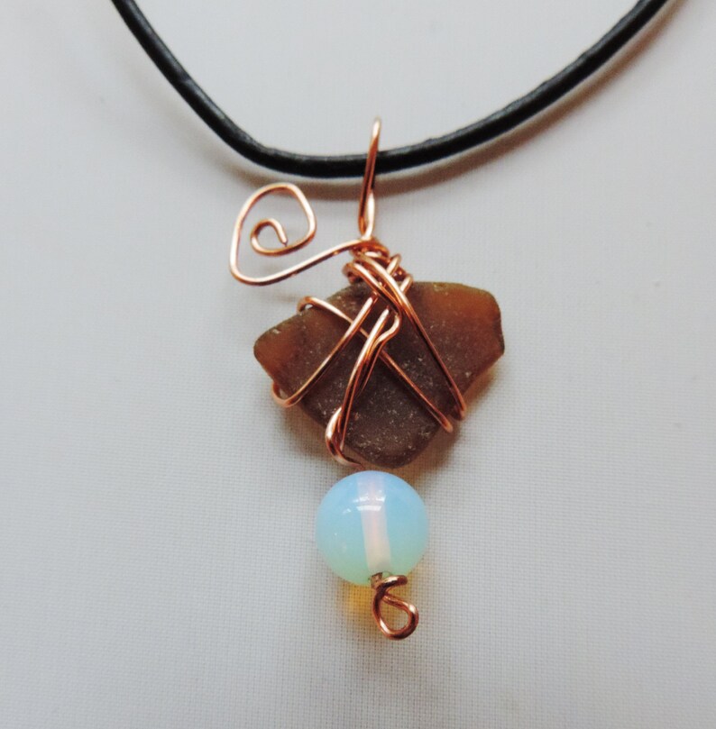 Opalite Necklace Sea Glass Jewelry Genuine Seaglass With Copper Wirewrap Canada Beachglass Pendant