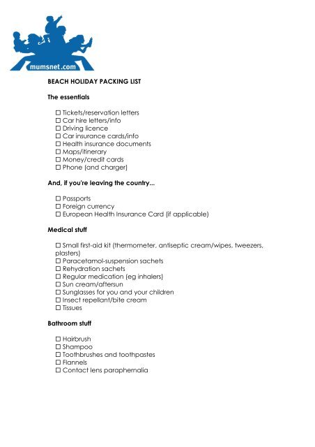 Beach Holiday Packing List The Essentials Tickets Mumsnet