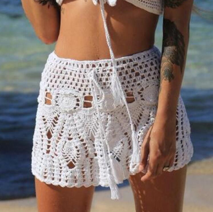 Women Sexy Crochet Bikini Bottom High Waist Bikini Beach Dress Swimwear Handmade Swimsuit Knitting Mini Shorts Summer Pant Skirt Bottom
